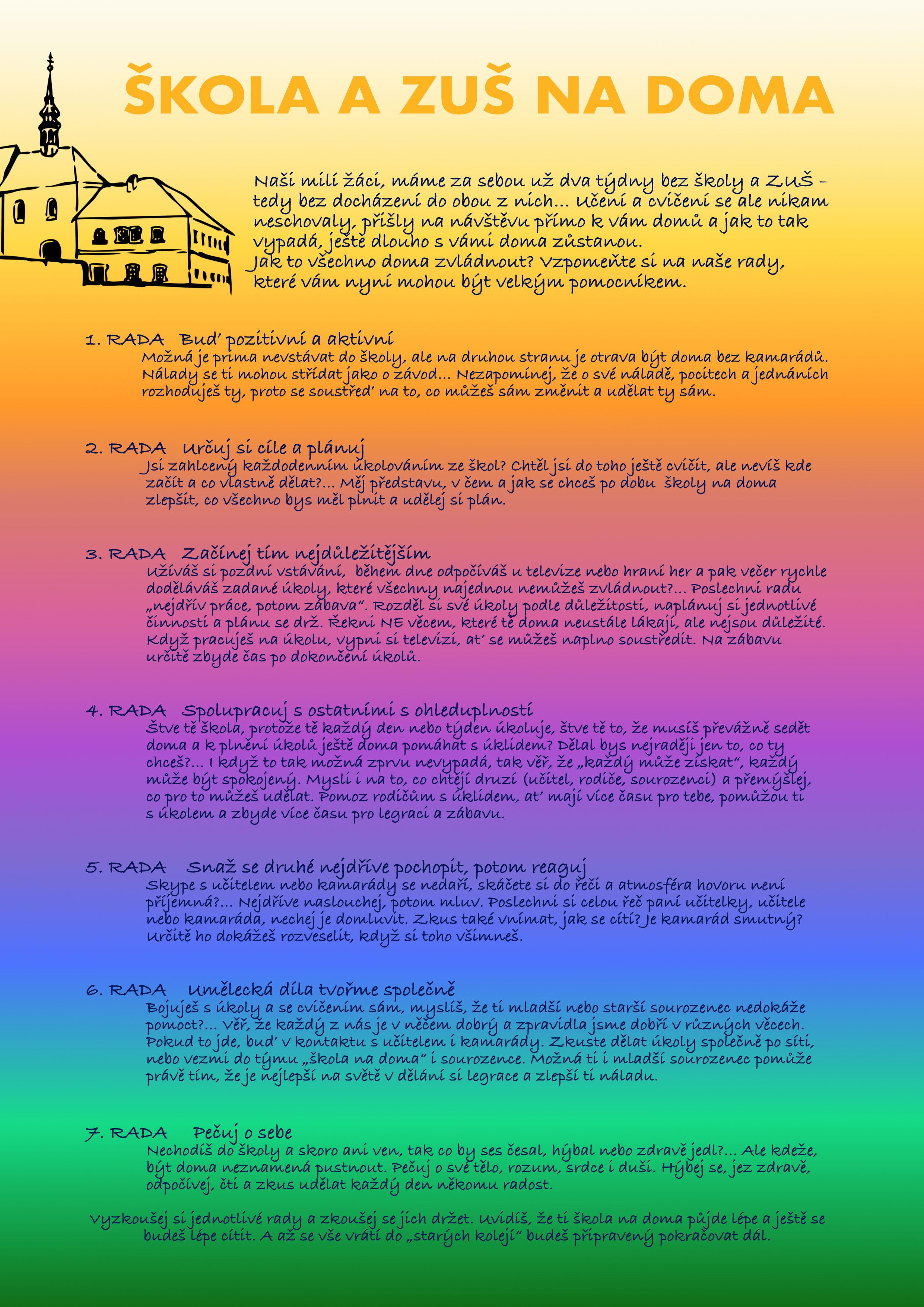 Druhá část dotazníku hodnotila pohled žáků na vzájemnou spolupráci se školou a na uplatnění žáků ve školních aktivitách. Na otázku, zda má učitel zájem o to, jak se žákovi daří, 75 % žáků odpovědělo rozhodně ano, 19 % – spíše ano. K dotazu, zda se učitel snaží, aby se při setkání s ním žák cítil dobře, uvedlo 77 % žáků odpověď – rozhodně ano, 17 % – spíše ano. Pokrok, který žák vidí na své cestě ke vzdělávacím cílům, byl ze 40 % hodnocen jako rozhodně ano, 41 % – spíše ano. Dotaz, zda škola rozvíjí žákovy silné stránky, byl zodpovězen z 34 % – rozhodně ano, 40 % – spíše ano. V této části dotazníku byla vždy jednou z možností i odpověď – nemám jasný názor. Tuto možnost však žáci ve svých odpovědích využívali menšinově.