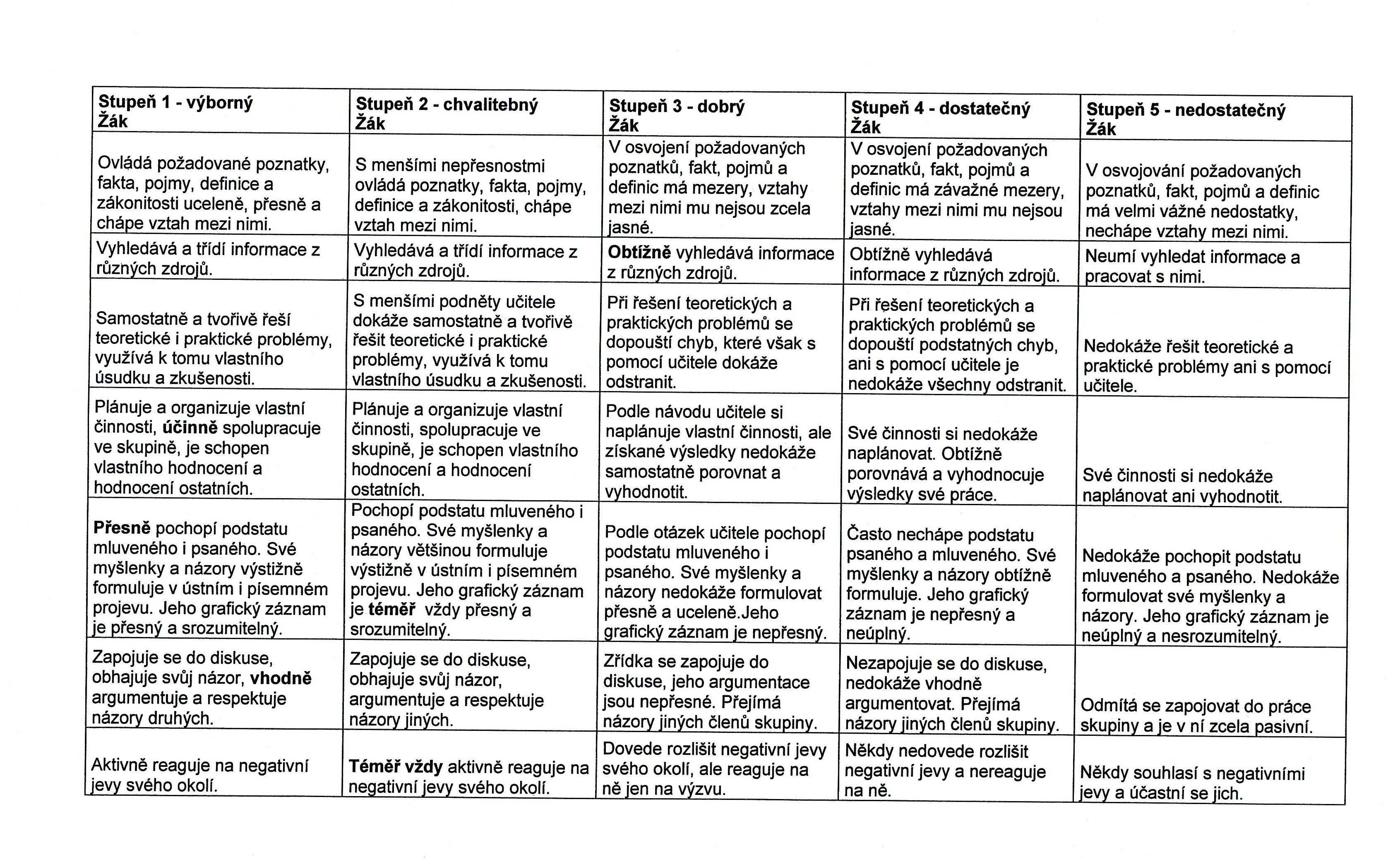 Učitel zohledňuje individuální přístup ke každému žákovi. Požadavky na výkon jsou konkrétní, kritéria hodnocení vyplývající z požadavku na výkon jsou pro žáky srozumitelná a dosažitelná. Žáci jsou s požadavky na výkon a kritérii hodnocení kvality výkonu seznámeni, chápou je, rozumí jim a ztotožňují se s nimi.